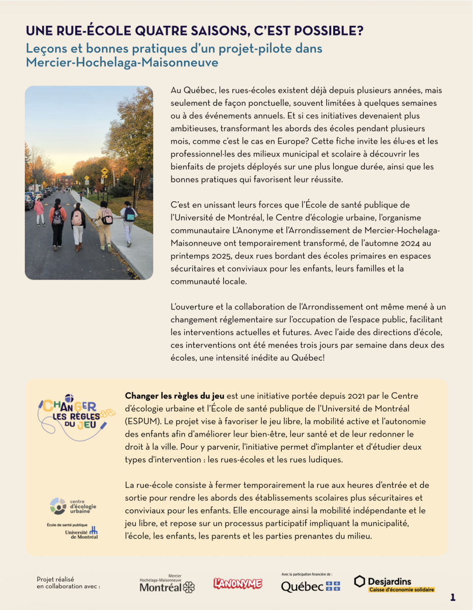 Découvrez les résultats des premières rues-écoles quatre saisons au Québec. Cette fiche invite les élu·es et les